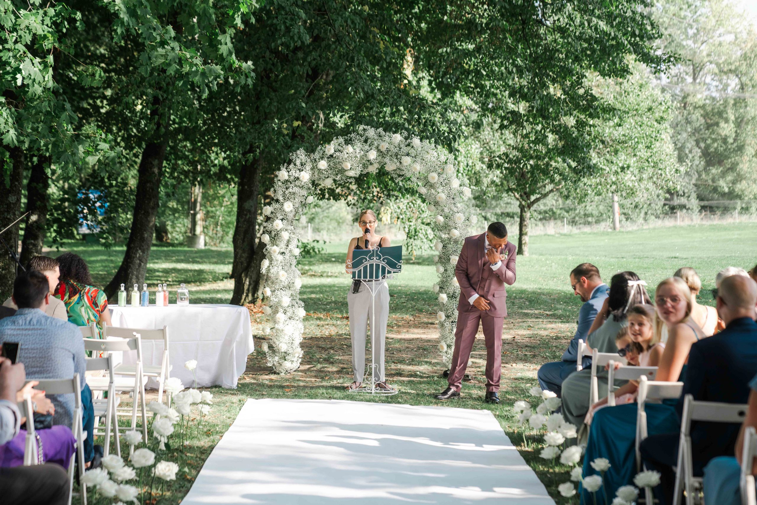 Nos invités nous ont faits que d’excellents retours : sur la cérémonie laïque, la décoration, mais aussi sur vous deux, qu’ils ont trouvées à l’écoute, souriantes et bienveillantes.